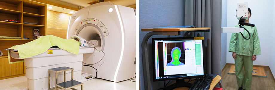 구안와사는 말초성 안면마비와 중추성 안면마비를 구별해야 하며, 말초성 안면마비일 경우 벨마비(Bell’s palsy)와 대상포진으로 인한 람세이헌트증후군을 구별해줘야 됩니다. 이를 구별하기 위해선 검사 기기의 역할이 굉장히 중요합니다. 양•한방 협진 시스템을 갖춘 모커리한방병원은 자체 보유한 MRI, 혈액검사기, DITI(적외선체열진단기) 등을 통해 신속하고 편리한 구안와사검사가 가능하며, 검사결과와 환자의 임상증상을 꼼꼼하게 진단하여 이를 바탕으로 구안와사 진행단계와 예후 등을 파악하고 그에 맞는 양•한방 협진 치료를 진행합니다.