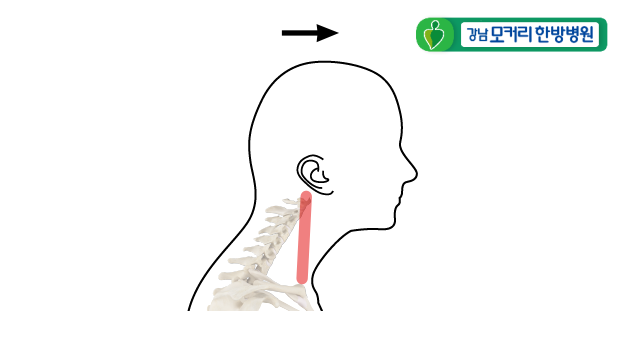 이로 인해 짧아진 목 앞쪽 근육들이 목뼈와 머리를 앞으로 잡아당기니까 거북목이 되는 것입니다.