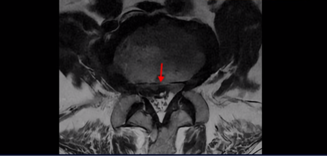 이 환자분은 협착증이 심하지 않았었는데 사무실 의자에서 두 번 넘어진 후에 왼쪽 다리는 마비 증상, 즉 힘빠짐 증상이 생기고 오른쪽 다리에는 심한 방사통이 생겨서 걸음을 거의 걷지 못하게 되어 휠체어까지 타게 된 환자분입니다.